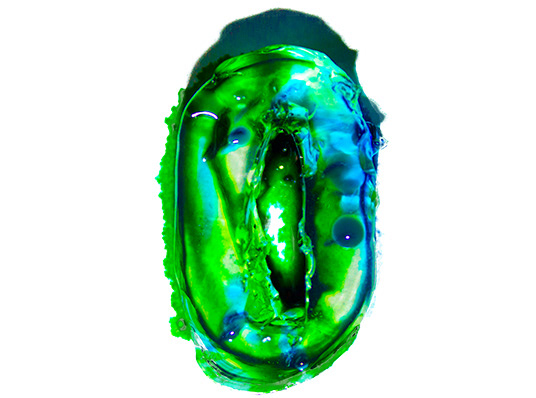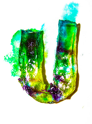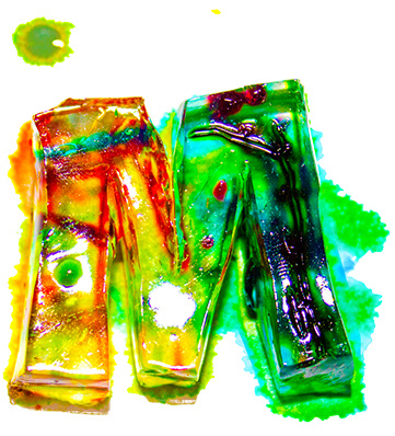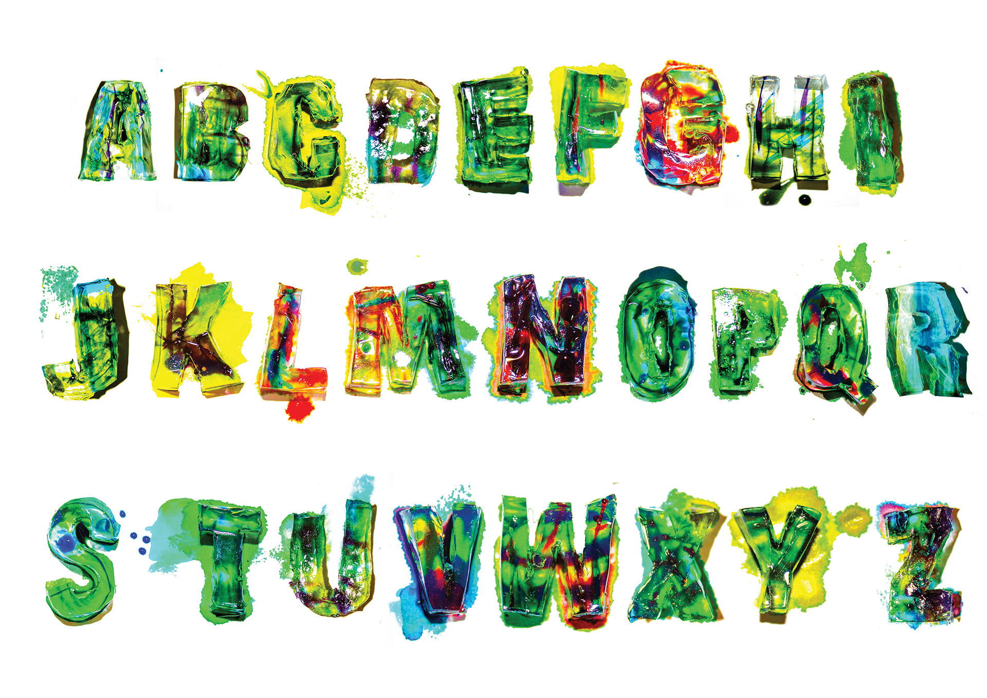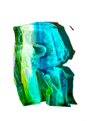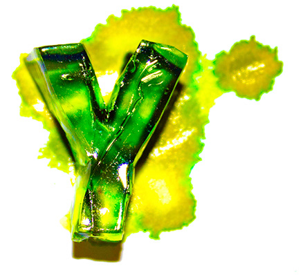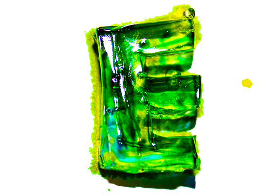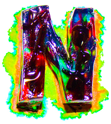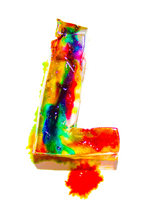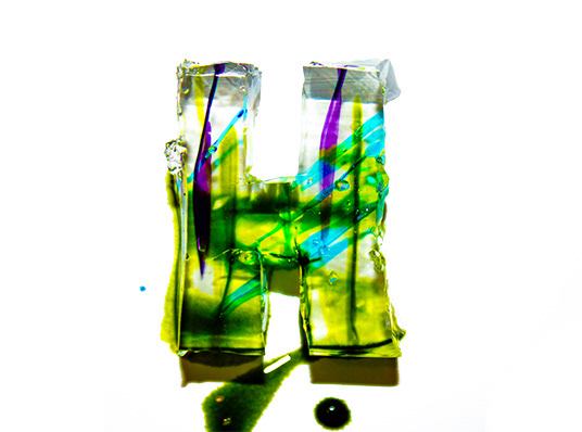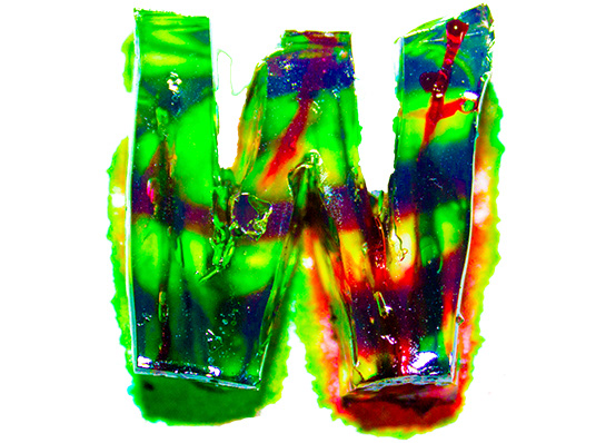 Handmade font, made out of gelatin and food coloring injected with a syringe.